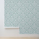 Rollen Damask Muster Weiß auf Aquamarinem Licht Tapete