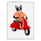 Karo-heraus Boston-Terrier, der seinen roten Vintagen Roller reitet! Diese Illustration Bostons Terrier würde groß für und Hundefans ebenso sein.