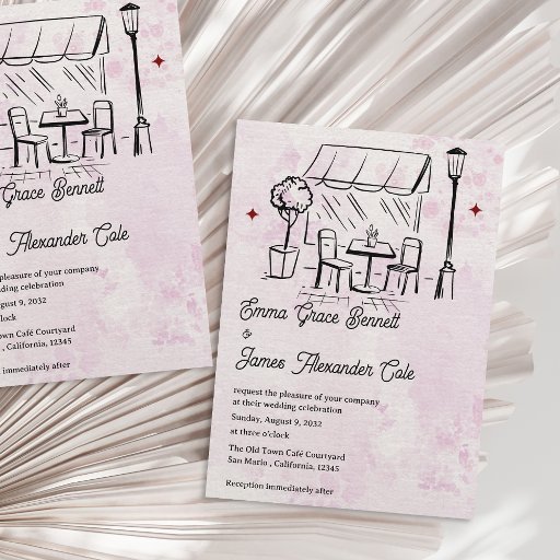 Romantic Pink Café Sketch Wedding Stationery SuiteDesignt von Mypaperlove Designs