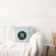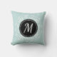 Schönes Kissen mit personalisiertem Monogramm mit blass-blauen und weißen Blumenkissen.