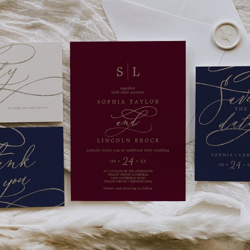 Romantic Calligraphy Navy and Burgundy Wedding SetDesignt von Miriam Kokolo
