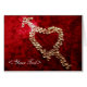Kleine Glasherzen in einer festlichen Feiertagsausstellung von Herz und Pfeilen auf reichhaltigem rotem Hintergrund angeordnet, um zu sagen, ich Liebe Sie zu jemandem Besonderes.