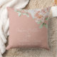 Dieses romantische, blumengeschmückte Hochzeitskuchenkissen besticht durch einen eleganten, staubigen pfirsichfarbenen Hintergrund mit Aquarellpfirsich und weißen Blume. Ein zarter Strauß wird oben abgebildet. Beispielnamen eines Ehepaares werden unten in einem eleganten Script-Schriftart gedruckt.