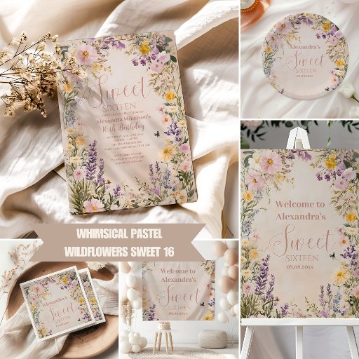 Feiern Sie mit dieser charmanten Einladung mit delikaten pastellfarbenen Wildblumen einen süßen 16. Diese Einladung ist perfekt für ein romantisches und skurriles Thema geeignet und verbindet sanfte Farbtöne wie Rosa, Lavendel und Pfirsich mit elegantem Grün. Die floralen Akzente bilden den Rahmen der Einladung in einer sanften, künstlerischen Anordnung, die einen schönen Kontrast zu einem leichten, strukturierten Hintergrund für einen ätherischen Look schafft. Jede Einladung erweckt die Eleganz und Unschuld eines süßen 16-Meilensteins und lädt die Gäste zu einem unvergesslichen, traumhaften Abend der Feier ein. Dieses Design ist vollständig anpassbar und erlaubt es Ihnen, Schriftart und Farben perfekt an Ihr Thema anzupassen. Ob im Freien oder in einem gemütlichen, intimen Ambiente, diese pastellfarbene Wildblume verspricht eine Touch von Romantik und Raffinesse für den besonderen Tag.