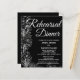 Romantische schwarze Kalligrafie Probe Dinner Einladungskarte. Diese romantische Wildblume Schwarz-Kalligrafie Probe Dinner Einladung ist ideal für eine einfache Hochzeitsfeier Probe. Das moderne klassische Design umfasst extravagante whimsikale Schnörkel sowie eine prächtige, elegante, handsignierte weiße Typografie.