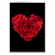 Schöne rote Rose- und Rose-Blätter, die in Form eines Herzens angeordnet sind und auf einem schwarzen Hintergrund stehend sind.