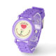 Uhr, Kinderuhr aus Edelstahluhr mit lila Lederarmband