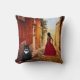 Kissen mit einem roten Gemälde einer Dame in einem romantischen italienischen Dorf mit einer großen Tuxedo Katze :-) Purfect für eine verrückte Katzenfrau, die Italien Lieben.