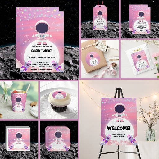 Mit der Pink Outer Space Little Explorer Baby Shower Kollektion lassen Sie sich in ein wahres Fest stürzen! Mit traumhaften himmlischen Designs, pastellrosa Farbtönen und sternenförmigen Akzenten ist diese Kollektion perfekt, um das große Abenteuer Ihres Kleinen zu würdigen. Wenn Sie ein anderes passendes Produkt oder eine Anpassung benötigen, wenden Sie sich bitte per E-Mail an Zazzle.