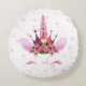 Rosa Bläsernicorn am Herzen Valentine Rundes Kissen