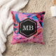 Rosa blaue Wirbel Monogramm Kissen