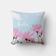 Rosa Blume Blumenkohl Mama Name Muttertag Kopfkissen. Eigenes, blumengeschmücktes Kissen mit Namen. Der Text ist mit rosa Blume und blauem Himmel auf einem schwarzen Hintergrund.