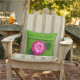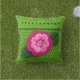 Das grüne und rosa Blumenbild auf einem Kissen im Freien stammt aus einem Foto eines originalen, gekreuzten Schaffens, das handgefertigt und urheberrechtlich geschützt ist. Auf dem Kissen wird ein Teil des einzigartigen handgefertigten Taschenes mit klaren Nähten, Blume, Blätter und Perlknopfdruck wiedergegeben.