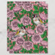 Handgezeichnetes Vektormuster mit Rose-Blume und Goldflossenvögeln. Alle Elemente für das Muster werden zuerst mit Tinte auf Papier gezeichnet, dann in Illustrator neu gezeichnet und farbig.