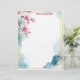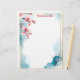 Rosa Kirschblüten in den links und rechten oberen Ecken eines goldenen Rahmens, auf einem blau-weißen Aquarellhintergrund machen dieses Schreibpapier perfekt für Ihre Korrespondenz, Newsletter oder Einladungen. Sehr schönes asiatisch inspiriert Thema.