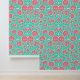 Rosa Blumenmuster mit grünen Blätter Tapete