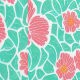 Ein wunderschönes Blumendesign mit rosa Blume und aufwändigen Liniendetails, umgeben von grünen Blätter. Die lebhaften Farben und das sich wiederholende Muster schaffen einen frischen, lebendigen Look, perfekt für Frühlings- oder Sommerprojekte.