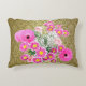 Rosa Blütenmischung Gold Damaskus Zierkissen
