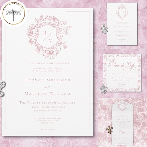 Elegant Pink Chinoiserie Bird & Crest WeddingDesignt von Kathe Santillo
