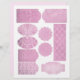 Ein Blatt mit kleinen Etiketten und Markierungen in Rosa mit verblassten, Vintagen Mustern. Diese kleinen Etiketten und Geschenketiketten machen wunderbare Verzierungen für Scrapbys, Junk Journals und Collage Projekte. Die Rückseite des Blattes ist blassrosa. Vintagere Designs und Scrapbook-Verzierungen sind in unserem Zazzle-Shop erhältlich, ebenso wie viele andere Stile von Scrapbook und Zeitschriften.