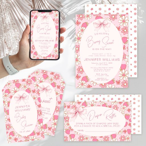 Pink Strawberry Bow Berry Sweet Baby Girl ShowerDesignt von Ramune Freze