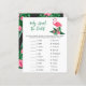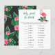 Das Design der Baby-Dusche ist mit rosa Flamingo mit üppig grünen Palmenblättern und tropischen Hibiskus-Blume ausgestattet. "Aloha Baby" Ein tropisches Blumenmuster mit schwarzer Hintergrundfarbe zieht die Rückseite der Karte hoch.