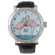 Rosa Flamingos Monogram Vintages Leder Armbanduhr