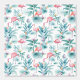 Tropische Blätter und Blume mit rosa Flamingos in einem nahtlosen Muster auf weißem Hintergrund.