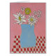 Spaß, bunte Blumenanordnung auf roter Karotischdecke. Die leere Karte, die für Geburtstag, Feiern, Glückwünsche, Jahrestag perfekt ist, erhalten gut und denken an Sie.