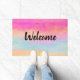 Rosa Gelbe Regenbogen Abstrakte Streifen Fußmatte