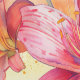 Ein lebendiges, handbedrucktes Aquarellmuster, das eine reizvolle Auswahl an rosa und gelben Blume in der Taglilie zeigt und mit seinen lebhaften Farbtönen und Bio Motiven ein Gefühl von Freude und Frische weckt.