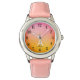 Kinderuhr aus Edelstahl mit rosa Lederarmband