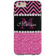 Rosa Glitzer Schwarz Zickzack Mit Monogramm Case-Mate iPhone Hülle