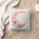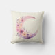 Kissen mit einer schönen Abbildung mit einem weichen rosa und lila Halbmond. Hübsche, rosa und gelbe Wildblumen schmücken diesen Himmelskörper.