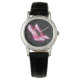 Uhr, Klassische Damenuhr mit schwarzen Lederarmband
