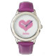 Uhr, Kinderuhr aus Edelstahluhr mit lila Lederarmband