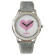 Uhr, Kinderuhr aus Edelstahl mit rosa Lederarmband
