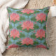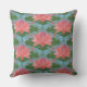 Ein schönes Kissen oder Kissen, mit einem Muster aus rosa Wasserlilien und blauen Libellen, aus einer handbemalten PapierCollage von Judy Adamson. Ein wunderschönes Geschenk für jemanden mit einem Geburtstag im Juli; Teil der Posh & Painterly 'Lily Pond' Kollektion.