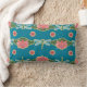 Ein elegantes Lumbalkissen oder Kissen, mit einem Muster aus rosa Wasserlilien und blauen Libellen, aus einer handbemalten Papiercollage von Judy Adamson. Ein wunderschönes Geschenk für jemanden mit einem Geburtstag im Juli; Teil der Posh & Painterly 'Lily Pond' Kollektion.