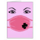 Diese T - Shirt und andere Gegenstände sind mit einer stilisierten Gesichtsgrafik mit rosa medizinischer Maske geschmückt.