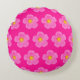Nahtloses Muster der Moss Rose Blume mit rosa Blütenblättern und gelbem Pistil und auf Rundkissen bedruckten Stöcken. Blumenkissen für Liebhaber von Blume und die Schönheit der Natur auf Ihrem Stuhl, Sofa, in Ihrem Schlafzimmer oder Wohnzimmer hinzufügen. Sie können es auch als Geschenk geben.