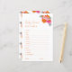 Entspannen Sie Ihre Gäste mit diesem rosa und orangefarbenen Baby Duschbegriff Rührei-Spiel, perfekt für eine leise und lustige Babydusche. Mit lebhaften botanischen Blüten in einem fröhlichen Party im Garten eignet sich das Hotel ideal für eine Frühjahr- oder Sommerdusche. Eine schöne Ergänzung zu Ihrem Blumenspieltisch, der Ihnen Lächeln und süße Momente zu Ihrer Feier bringt. ANTWORTSCHLÜSSEL : 1. Kinderzimmer 2. Krippe 3. Flasche 4. Windeln 5. Schnuller 6. Neugeborene 7. Deckblatt 8. Bassinet 9. Rattle 10. Formel 11 12. Stillzeit