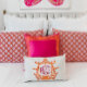 Erfrischen Sie Ihr Zimmer! Chic trendy bunt pink und orange Pagode Trellis und Blumenrahmen monogramm Initialen Kissen. Klicken Sie auf Personalize It, um Ihre Monogramme hinzuzufügen (First, Last, Middle in dieser Reihenfolge) und erstellen Sie Ihr eigenes einzigartiges Lumbalkissendesign! Ein Teil des Zimmers | Kat-Sammlung. © Marisu Valencia™.