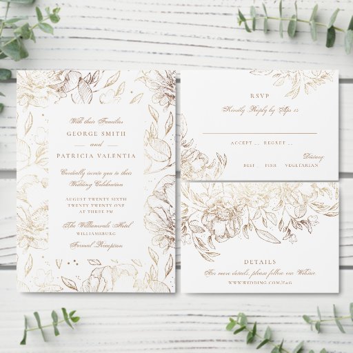 Gold Foil Flowers Hand Drawn Elegant Designt von Phrosné Barwood