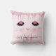 Rosa Rosengold Katzenmutter Monogramm Kissen. Glamouröses Katzengesicht in Rose Gold, rosa und goldfarbener Glitzer, rosa, herzförmige Nase und große, schimmernde rosa Augenlider. Obere Kissen mit tropfrosa Glitzer dekoriert. Einfach anpassen und das Monogramm hinzufügen, um das Kissen zu personalisieren.