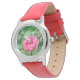 Uhr, Kinderuhr aus Edelstahl mit rosa Lederarmband