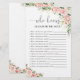 Blush Pink Rose Gold Brautparty Spiel. Dieses stilvolle und elegante Bridal Shower Invitation besticht durch seine herrlich handbemalte Aquarellfarbe Blush Pink Rose Gold. Finden Sie passende Artikel in der Blush Pink Rose Gold Kollektion.