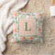 Rosa Rose Monogram Kissen - feminine, mädchenhafte, moderne Wohngestaltung. Wasserfarbenes botanisches Blumenmuster.