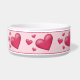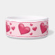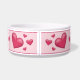 Desteis Illustration von schönen rosa Farbherzen in verschiedenen Größen. Die Hintergrundfarbe ist hellrosa und die obere und untere haben einen rosa Rahmen. Es gibt auch einen personalisierbaren Textbereich für einen Namen oder anderen benutzerdefinierten Text wie "Food" oder "Water". Dieses Design ist perfekt für jeden, der nach einer Valentinstag-Theme-Schüssel für sein Haustier oder für eine Person, die die Farbe Rosa zum Beispiel mag.