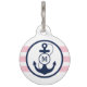 Marineblauanker mit rosa Seestreifen und Monogramm, fügen den Ihren Namen des Haustieres und Ihre Telefonnummer auf der Rückseite hinzu.